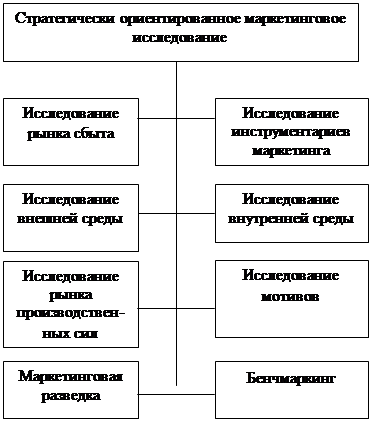 В Японии, где бенчмаркингом занимаются уже длительное время, наиболее распостраненной формой является товарный бенчмаркинг, который основан на психологии “и я тоже”, являющийся, по мнению известного специалиста по маркетингу Багиева, развитием правила Сун Тзу. Менее популярны бенчмаркинги функций и процессов. Анализ содержания бенчмаркинга показывает, что его можно рассматривать как направление маркетинговых исследований. Положение бенчмаркинга в системе маркетинговых исследований показано на рис. 1.1.