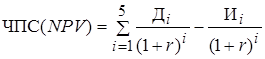 1.1 Чистая приведенная стоимость проекта (NPV) рассчитывается по формуле: