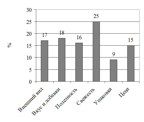 Рис. 3.5. Важность критериев при покупке хлебобулочных изделий