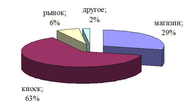 Что касается предпочтения места покупки, опрос покупателей дал следующий результат (рис. 3.6):