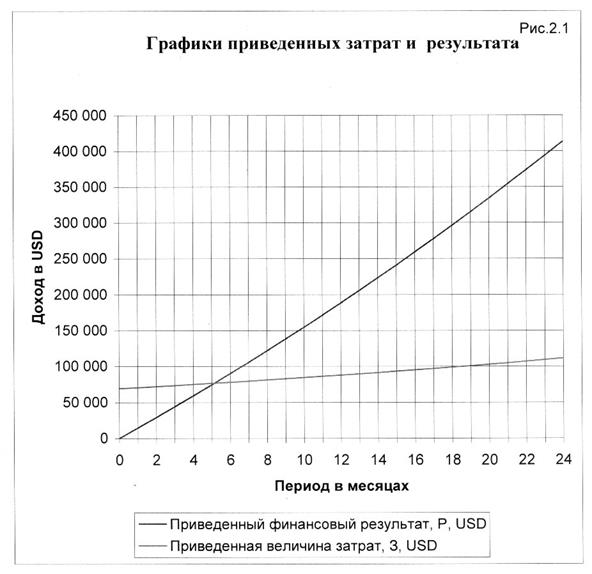 | Период в месяцах | Приведенный финансовый результат, Р, USD | Приведенная величина затрат, З, USD | Чистая приведенная величина дохода, ЧПВД=Р-З, USD |
