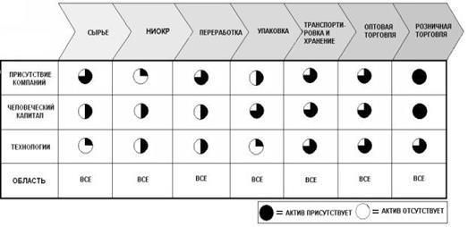При этом проводится анализ конкурентоспособности по всей цепочке товародвижения: производство сырья, производство компонентов (полуфабрикатов), производство конечного продукта, система доставки готовых продуктов и полуфабрикатов до конечного потребителя и т.п. (рис.3)