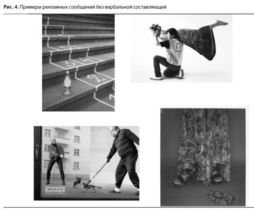 Если такое мышление возможно, значит, образ способен доминировать над словом. Косвенным подтверждением тому служат некоторые зарубежные рекламные сообщения, которые обходятся без слогана (рис.4).