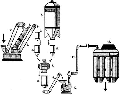Воздух, удаляемый из мельниц, печей, предварительно очищается в осадочной шахте, в циклонах и окончательно в электрофильтрах и рукавных фильтрах.[4, гл. XX]