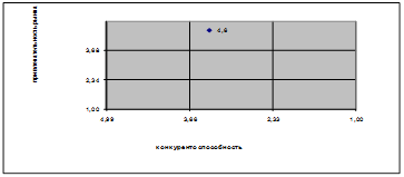 По данным координат (3,35;4,6) в соответствии с матрицей Маккенси определяется оптимальная стратегия маркетинга. Оптимальной будет являться наступательная стратегия, т.к. она позволит фирме удерживать и наращивать тем роста объемов продаж.