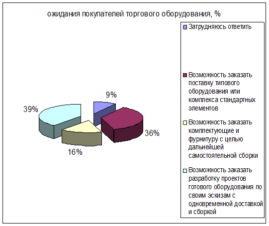 При выборе торгового оборудования клиенты в первую очередь обращают внимание на его стоимость, затем – на дизайн, качество и срок выполнения заказа. На такие характеристики, как дизайн и качество, чаще обращают внимание универмаги и аптеки, а на цену – ЧП.