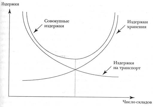 В результате анализа издержек можно найти оптимальное число складов, при котором совокупные издержки минимальны. Аналогичным образом можно проанализировать расходы при выборе способа транспортировки, уровня запасов на складе, обслуживания клиентов и т.д.