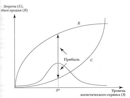 Таким образом, оптимальный уровень сервиса (S*) может быть рассчитан на основании известных зависимостей издержек на сервис и дохода.