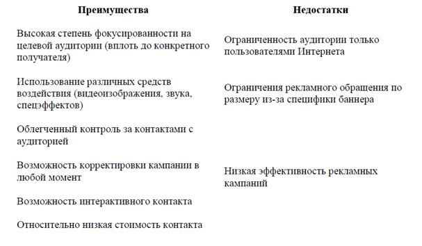 Все «плюсы» и «минусы» интернет-рекламы, отражены в таблице 2.