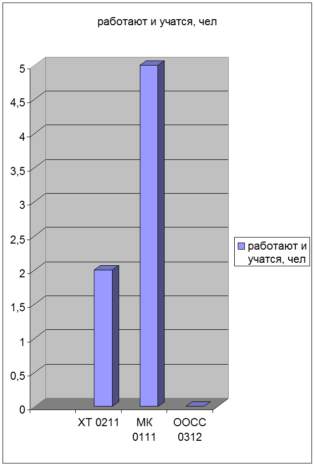 По данным таблицы 1 видно, что есть некое несоответствие в числе респондентов. Это объясняется тем, что некоторые выпускники находятся за пределами Алтайского края такие как: Семёнова Анна Васильевна (группа ООСС 0312), Вдовыченко Елена Васильевна (группа МК 0111), Дмитриев Денис Николаевич проходит службу в армии, а об остальных была не найдена информация и те респонденты, которым анкета рассылалась по почте не выслали обратного письма с ответами.