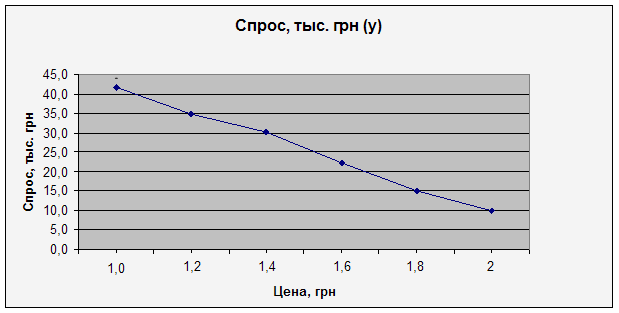 | Спрос, тыс. шт. | 41,8 | 34,8 | 30,1 | 22,3 | 15,0 | 9,9 |