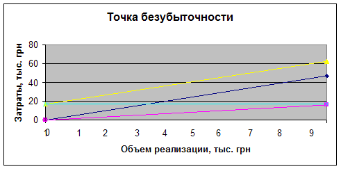 Определить минимально приемлемую цену единицы продукта, если фирма поставила своей целью получить прибыль не менее 16 тыс. грн., при рыночном спросе на продукт 9 тыс. шт. Определить точку безубыточности фирмы. Задачу решить аналитическим и графическим методами.