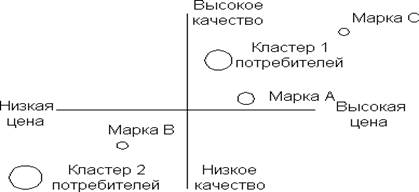 Рис. 1.1 . Типичный пример позиционирования товара с учетом кластеров потребителей