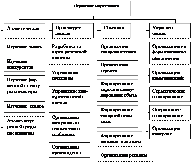 Развитие маркетинга связанно с последовательностью его концепции. Основными функциями маркетинга являются: аналитическая, производственная, сбытовая (функция продаж), функция управления и контроля.