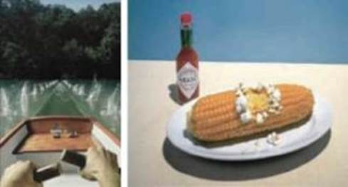 Такой прием встречается довольно часто и имеет в своей основе использование внешней идентичности рекламируемого продукта с чем либо еще. Цель - предмет или объект, который мы используем, должен визуально максимально близко напоминать то, что рекламируют, или то, что хотят донести до потребителя. Таким образом, центровое место в рекламном сообщении как бы занимает сам продукт или связанные с ним предметы, а предложенная визуальная игра добавляет нужные характеристики.