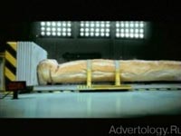 Далеко не каждый способен грамотно применить оригинальный язык аналогий. Креаторы французского автозавода решили не утомлять зрителей, очередной раз показывая, как машины разбиваются в мясо о деформируемый барьер. Понимающий человек без сомнения увидит в этом зрелище то, что он должен увидеть: сработавшие подушки безопасности, минимум деформаций салона и т.д. А вот человек непосвященный обратит внимание, прежде всего, на груду металлолома, в которую превратился автомобиль после столкновения. Вот и решили креаторы не травмировать ранимую душу автомобилистов и пошли путем аналогий. Вместо машин в отбойник врезались традиционные кулинарные шедевры той или иной части света. Вот взорвалась немецкая сосиска, вот японский рис с морепродуктами перестал представлять одно целое и только французский багет остался целым и невредимым. Сработал как пружина. Мораль: "Самые безопасные машины сделаны во Франции".