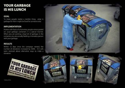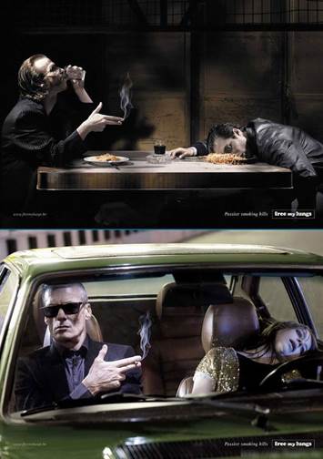 Летом 2005 года лондонский офис Leo Burnett при поддержке британского правительства запустил на центральных телеканалах страны натуралистичный видеоролик, якобы снятый на сотовый телефон. Подростки гуляют по улице, смеются в камеру — а через минуту один из них выходит на проезжую часть в неположенном месте, и его на огромной скорости сбивает автомобиль. В декабре того же года агентство TBWA\Paris начало в прессе кампанию по борьбе за права животных. На двух фотографиях, напечатанных в нескольких европейских журналах, изображен тюлень с ножом в зубах, сидящий на льду около окровавленного младенца, и две обезьяны, ложками поедающие мозг из человеческой головы, которая лежит на столе перед ними. Смысл рекламы выражен в слогане: «Не обращайся с другими так, как не хочешь, чтобы обращались с тобой (Don‘t treat others the way you don‘t want to be treated)».