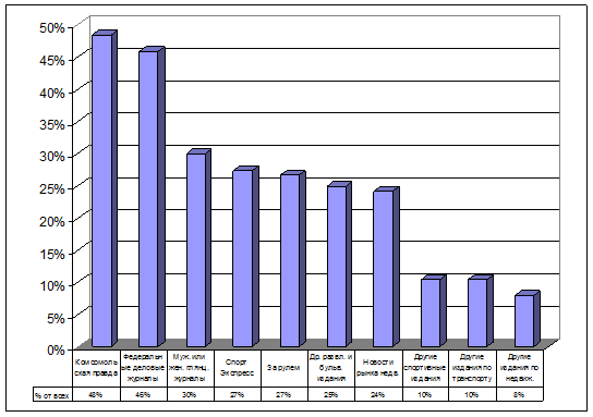 Первым этапом проходило уличное исследование, для выявления популярность среди покупателей деловой прессы основных деловым и неделовых изданий, определения дней их покупки и выявления популярности различных рубрик.