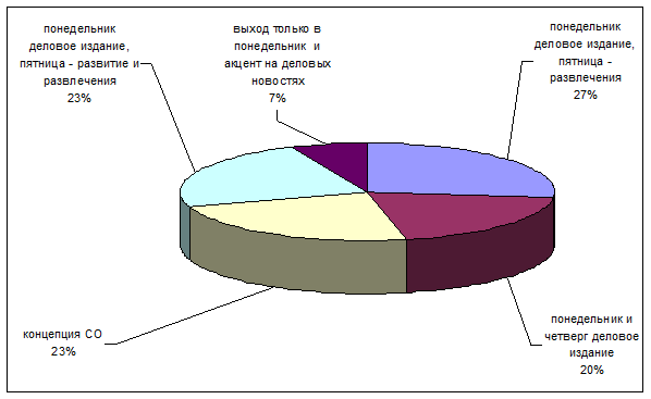 Определив свои конкурентные преимущества, потребности читательской аудитории и угрозы со стороны конкурентов была сформулирована новая концепция делового издания «Самарское Обозрение». Не смотря на то, что по результатам исследования лидером покупательских предпочтений оказалась 1 концепция (понедельник деловое, пятница – развлекательное), издательство газеты выбрало 2 концепцию (понедельник - деловое, четверг – деловое с дополнительными вкладками) с небольшими изменениями (в днях выхода некоторых тетрадей). Она не подрывала репутацию делового издания, как первая и была наиболее близка к концепции предложенной «Самарским Обозрением». Как известно руководители предприятий в большей степени заинтересованы в использовании результатов исследований, когда они подтверждают их интуитивные представления о способах решения проблемы.