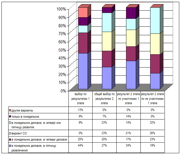 Вариант 1 Понедельник – деловое издание, пятница – развлекательное 14 экспертов (44%)