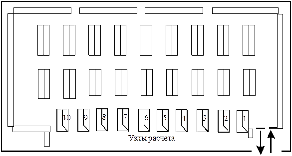 Рис.5. «Решетка» с линейным смешанным размещением торгового оборудования