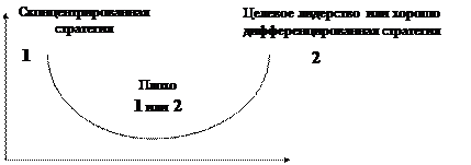 Согласно стратегической модели Портера зависимость между долей рынка и прибыльностью имеет “U-образную” форму.