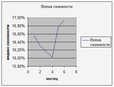 =16,03%). График сезонной волны наглядно демонстрирует наличие сезонной компоненты в изучаемом показателе.
