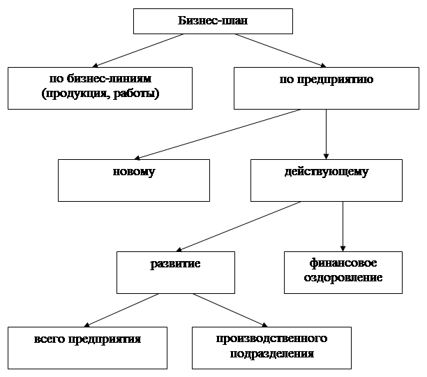 Рисунок 1– Классификация бизнес-планов по объектам бизнеса