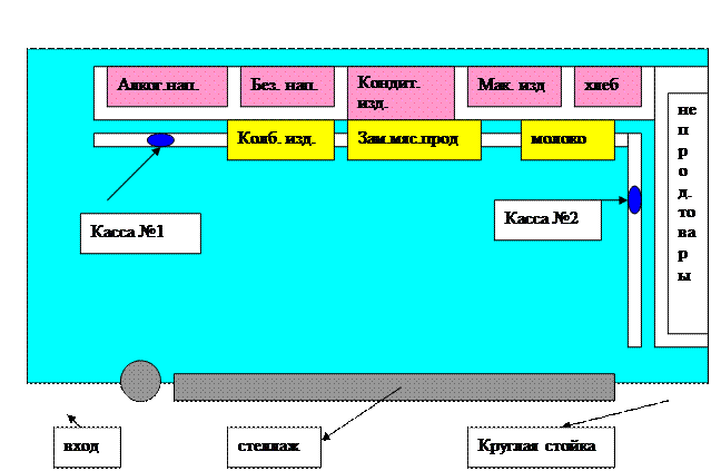 Недостатком является тог, что при неправильном расположении стеллажей и отсутствии указателей сложно найти нужный товар, торговый зал не просматривается.