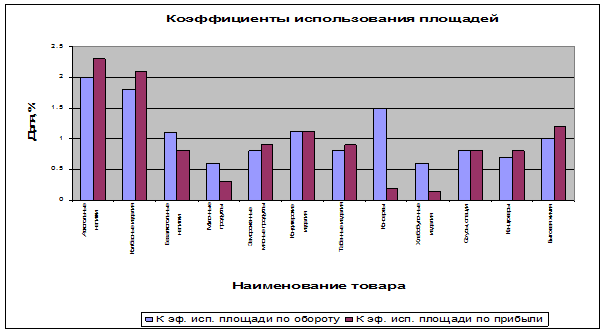 будет увеличивать прибыль предприятия. Площадь, занимаемая кондитерскими изделиям, и товарами бытовой химии используется не полностью, поэтому необходимо размещать дополнительно продукцию на полки, если этого не произойдет, то это в дальнейшем может повлиять на прибыль предприятия и она уменьшится. Приложение Е.