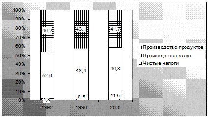 Рис. 1.1 Структура ВВП России (% к итогу)
