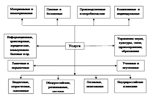 Интересы развернутой и всесторонней характеристики производимых услуг требуют их рассмотрения в различных аспектах и группировках (рис. 1.2).