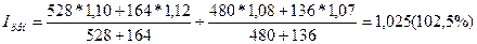 1) Iстоим =(528+ 164): (480+136) = 1,1234 (112,34%);