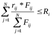 Поскольку в течение каждого периода времени средневзвешенный уровень риска, связанный с вложением денег в финансовые инструменты, не должен превышать заданной величины Ri, должны иметь место следующие ограничения: