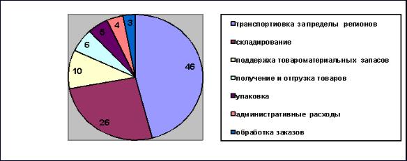 Основные издержки товародвижения складываются из расходов на транспортировку, последующему складированию товаров, поддержанию товароматериальных запасов, получению, отгрузке и упаковке товаров, административных расходов и расходов по обработке заказов.