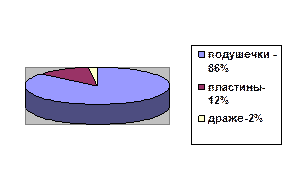 - рынок жевательной резинки в пластинках и подушечках 84,3% общего объема российского рынка в 2008 и88% в 2009г.).