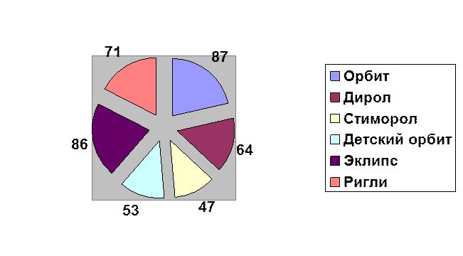 | Стиморол | 45 | 80 | 50 | 10 | 60 | 50 | 35 |