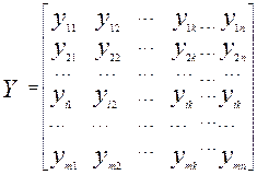 Прежде чем прибегнуть к помощи методов сравнительного анализа, необходимо выполнить определенные преобразования. Исходным и одновременно самым важным шагом, предопределяющим правильность конечных результатов, является формирование матрицы наблюдений . Эта матрица содержит наиболее полную характеристику изучаемого множества и благодаря этому играет важнейшую роль в проводимом исследовании. В качестве элементов данной матрицы мы можем рассматривать уровни ряда, абсолютные приросты, темпы роста или темпы прироста.