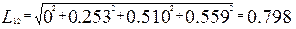 После исчисления расстояния между всеми единицами данной совокупности получаем матрицу расстояний. Ее можно представить в следующем виде: