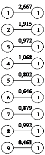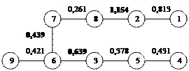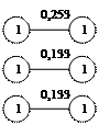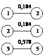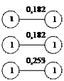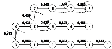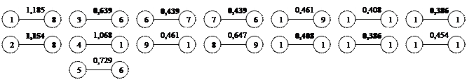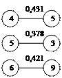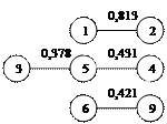 Разбиение древа осуществляется путем выбора пороговой величины h. В данном случае она равна 0,435(получаются «нормальные» плеяды). Значит, удаляем все связи больше данного числа. В результате получаем «нормальные» плеяды(рис 3,9):