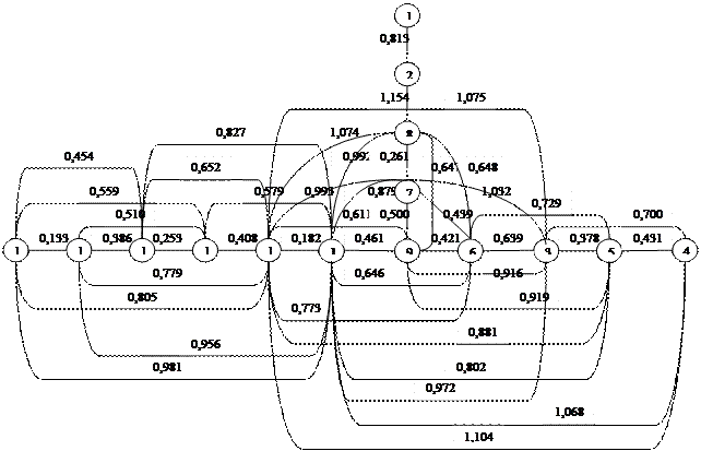 1)сходными считаются годы(моменты времени), между которыми незначимые расстояния, и соответственно в качестве матрицы сходства берется матрица расстояний: чем меньше расстояние между годами тем они имеют больше сходство по данной системе показателей. В настоящее время существует более 10 алгоритмов расчета расстояний между объектами, но чаще используются 2 алгоритма: