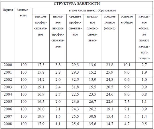 Практическая потребность учета населения вызывает необходимость выделения видов (структуры) занятости распределения активной части трудовых ресурсов по сферам и отраслям экономики.