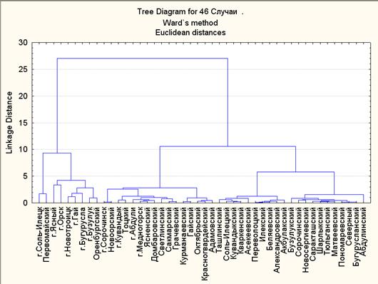 3.Провести классификацию муниципальных образований Оренбургской области по исходным признакам