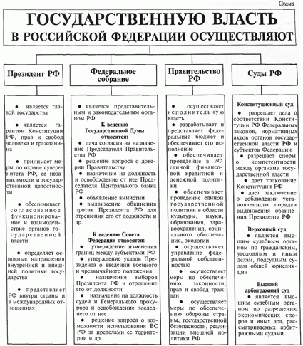 | Государство реализовывает свою власть в соответствии с определенными принципами. Важнейшие из них возводятся в ранг конституционных и составляют основы конституционного строя. Основы конституционного строя - это основные принципы в основе политической системы общества, формы правления и государственного устройства, отношений государства и гражданина. Конституция РФ устанавливает целостную систему принципов конституционного строя: - права и свободы человека, гражданина как высшая ценность; - народовластие и республиканская форма правления; - федеративное устройство; - разделение властей; - государственный суверенитет; - верховенство права; - политическое и идеологическое многообразие; единство экономического пространства и свобода экономической деятельности; - социальный характер государства; - светский характер государства; - признание и гарантирование местного самоуправления. Все эти положения изложены в главе I Конституции РФ «Основы конституционного строя». Они определяют все последующее содержание Основного Закона, и им не могут противоречить другие его нормы. Положения главы в Конституции РФ, устанавливающие основы конституционного строя, не подлежат пересмотру путем внесения в Конституцию поправок и изменений - возможно только принятие новой Конституции. Статья 1 Конституции определяет Российскую Федерацию как демократическое федеративное правовое государство с республиканской формой правления. Характеристика России как демократического государства выражает необходимость обеспечения в стране реального действия прав и свобод человека, народовластия, идеологического и политического плюрализма, разделения властей, а также местного самоуправления. Конституция РФ закрепляет основные политические права человека и гражданина на уровне международных стандартов (свобода слова, право на объединение, право участвовать в управлении делами государства, право избирать и быть избранным и т.д.). Права и свободы человека признаются высшей ценностью. Государство обязано соблюдать и защищать их. Носителем власти в России, ее суверенитета является многонациональный народ. Это значит, что наша страна провозглашается государством народовластия. Народовластие означает принадлежность всей государственной власти народу, а также свободное осуществление народом этой власти в соответствии с его суверенной волей и конкретными интересами. Народ России осуществляет свою власть непосредственно, а также через органы государственной власти и местного самоуправления. Характерным атрибутом демократического государства является идеологическое многообразие. Никакая идеология не может устанавливаться в качестве государственной или обязательной. Данный принцип дополняется также конституционным признанием многопартийности. Этот принцип способствует повышению эффективности народовластия, вовлечению в политическую деятельность более широких слоев населения, легализует политическую оппозицию, способствует преодолению апатии и отчуждения граждан от власти. Конституция РФ устанавливает, что Россия является правовым государством. Правовое государство - это конституционное государство. Конституция является центром правовой системы, на ее базе строится весь механизм законности государства. Она имеет высшую ю
