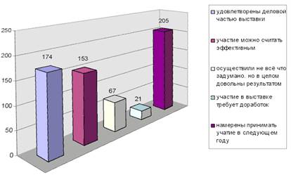 Несмотря на то, что 21 фирма (9%) заявили, что участие в выставке требует доработок, а 67 (28%) осуществили не все, что задумали, 63% участников (153 компаний) отметили, что участие можно считать эффективным, а 205 фирм (85%) намерены принимать участие в следующем году.