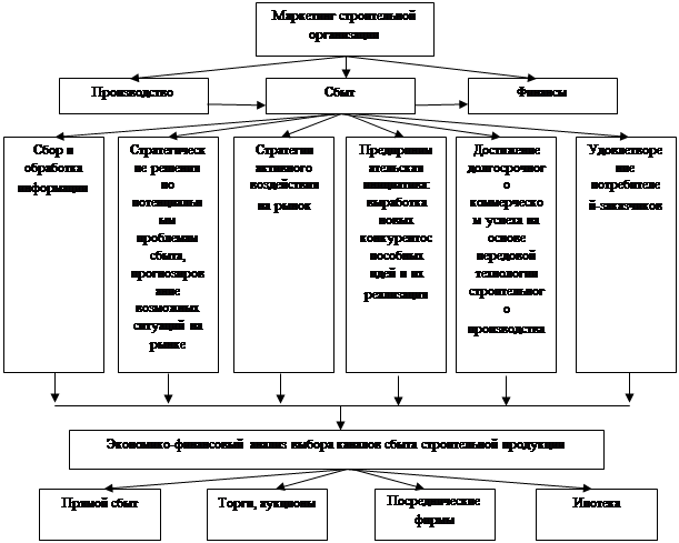 Ничем не отличается и строительные организации, и, соответственно, рынок строительной продукции и услуг. Налаженная работа в области производства, рекламы, маркетинга, снабжения сырьем, налаженная ценовая политика – все это способствует продуктивной работе любого предприятия, в том числе и строительного. Немаловажную роль играет сбытовая политика строительной организации.