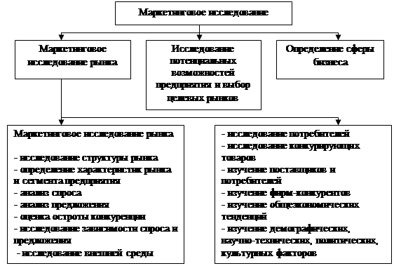 Каждая фирма самостоятельно ставит себе задачи маркетингового исследования, исходя из собственных интересов. Охват широкого спектра направлений маркетинговых исследований зависит от конкретных условий: ситуации на товарном рынке, маркетинговой стратегии фирмы и, разумеется, от ее специализации. Значительная часть производственно-сбытовых и торговых предприятий проводит маркетинговые исследования пор следующим направлениям: оценка рыночной ситуации, краткосрочные и среднесрочные прогнозы основных параметров рынка, изучение поведения покупателей и конкурентов, характеристика уровня и динамики цен и т.п., а также оценка собственного потенциала. [3, с.48]