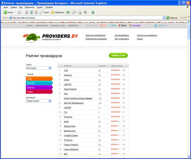 Рейтинг провайдеров