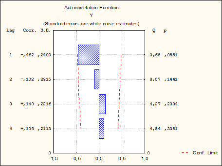 Вывод: В данном временном ряду автокорреляция отсутствует, то есть тенденции нет.
