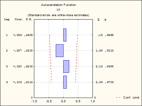 б) Гистограмма автокорреляции Х1